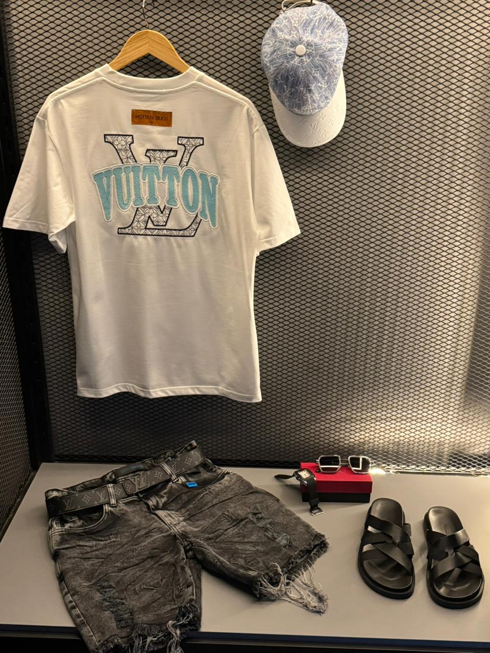 Essa camiseta é status sem ostentação. O branco com bordado azul entrega elegância francesa e funciona como peça curinga de luxo. O oversized traz conforto runway e a assinatura histórica da LV valida a autenticidade. É a base perfeita para looks monocromáticos ou para destacar acessórios e tênis de grife.