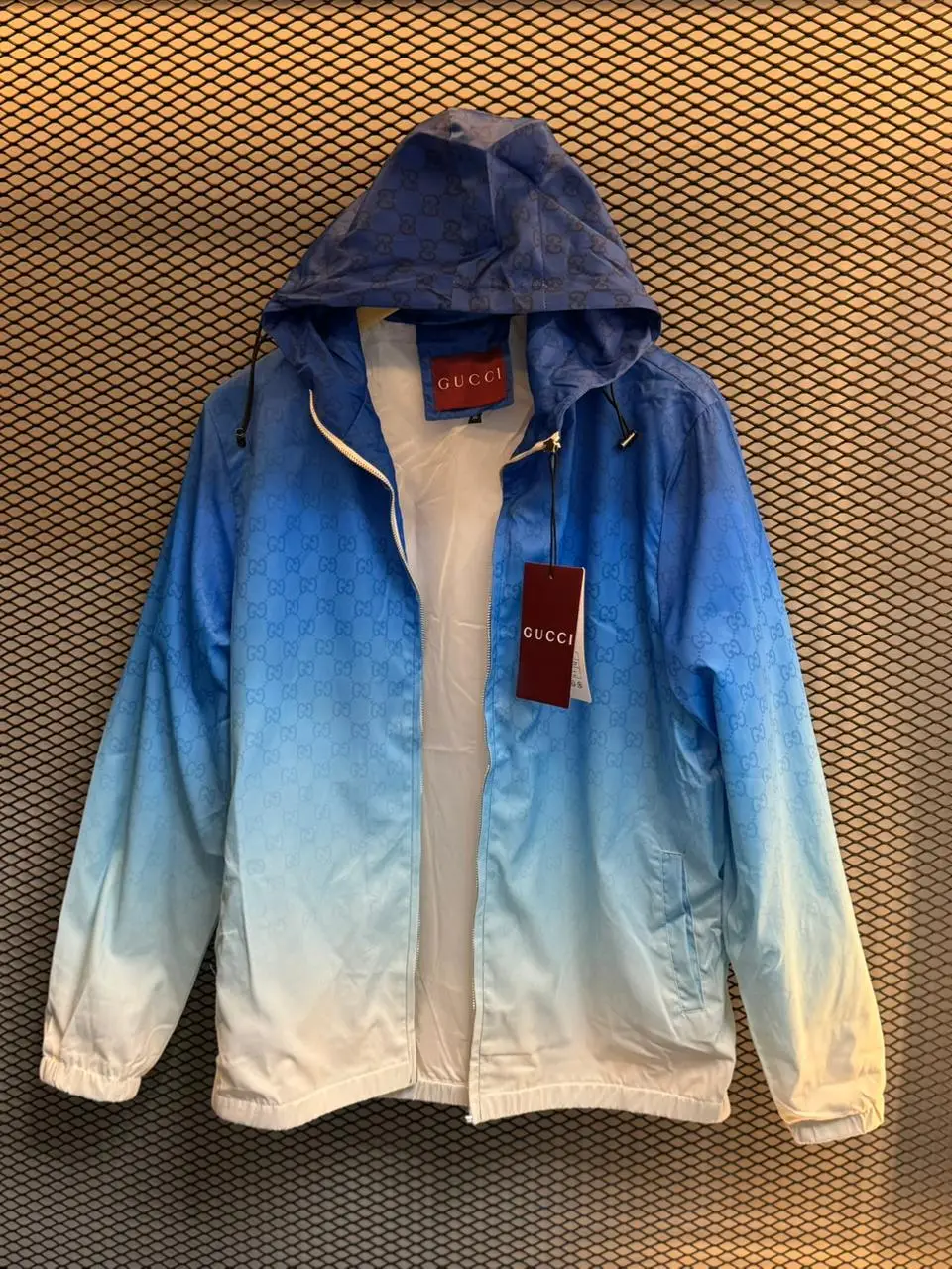 Adicione um toque de exclusividade ao seu guarda-roupa com a Jaqueta Gucci Ombre, um item de luxo que combina estilo moderno e a icônica elegância da marca. Confeccionada em material de alta qualidade, esta jaqueta apresenta um design ombre único, que vai do azul vibrante ao branco suave, trazendo um visual arrojado e sofisticado.