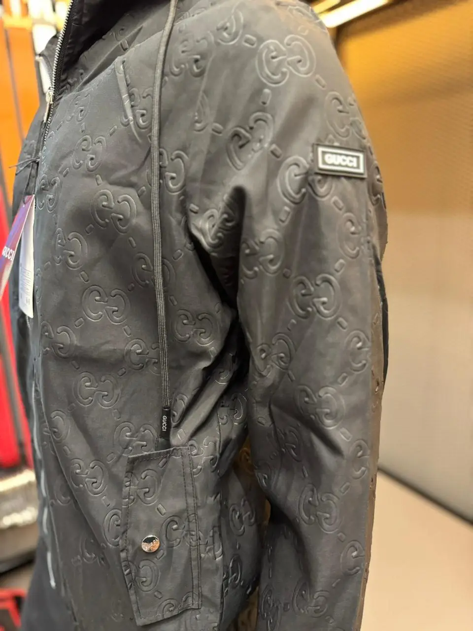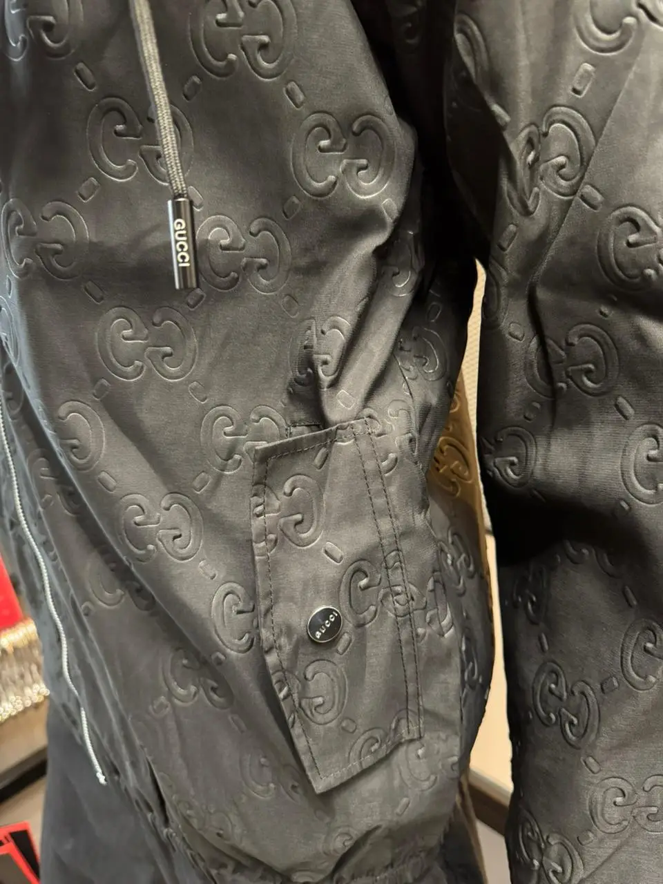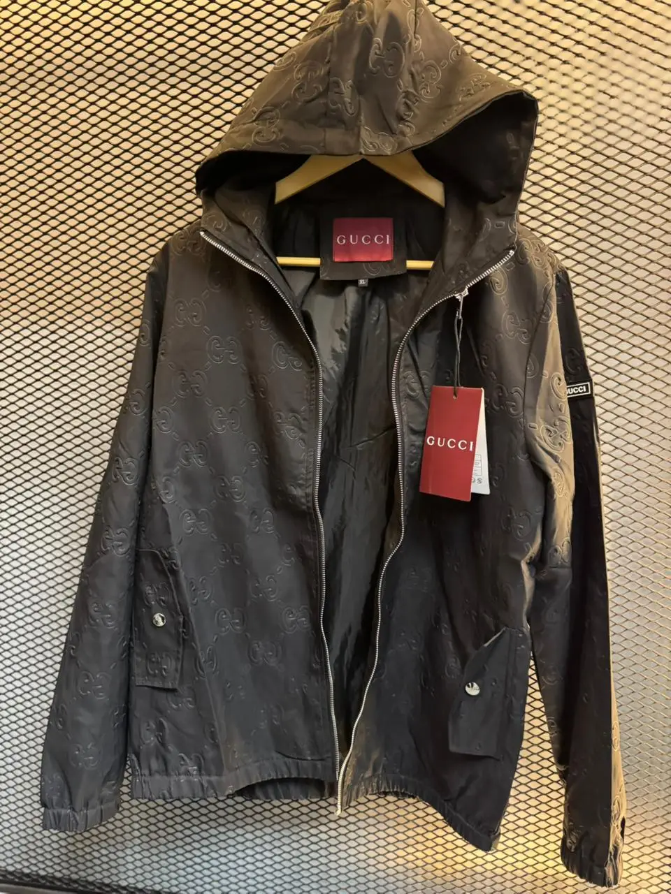 Combine estilo e funcionalidade com esta jaqueta corta-vento inspirada no design sofisticado da Gucci. Ideal para quem busca um visual moderno com proteção e leveza.